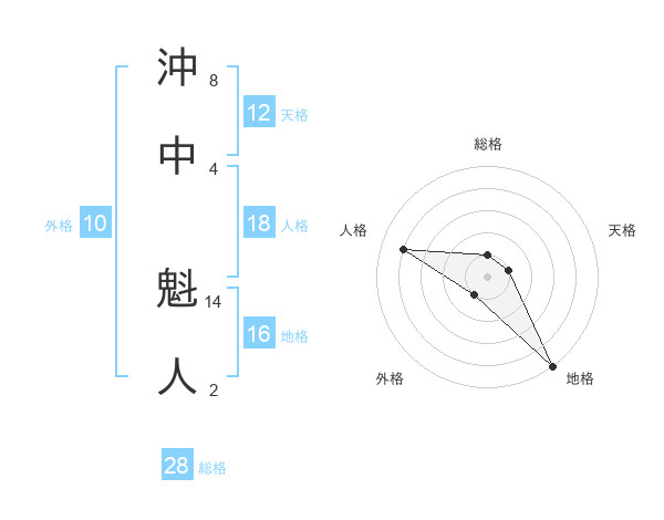 沖中 魁人さんを姓名の画数から五運を鑑定