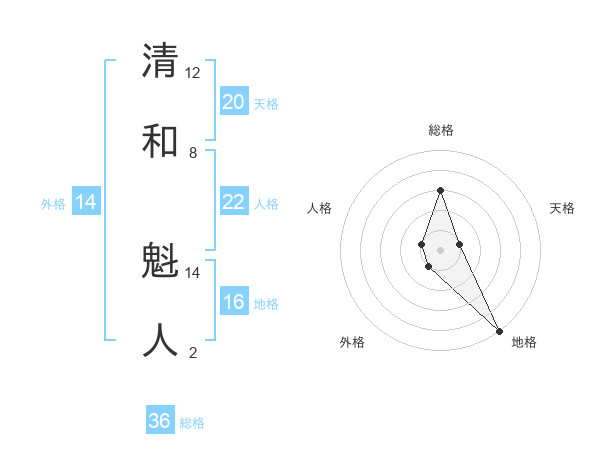 清和 魁人さんの天格は20画の1点!