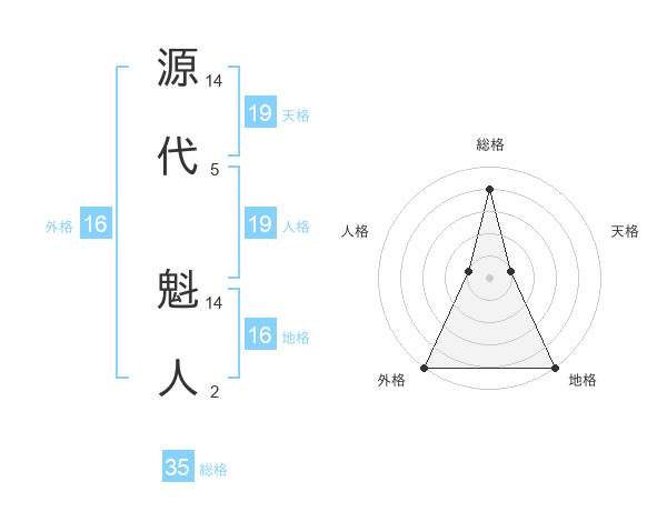 源代 魁人さんの総格は35画の4点!