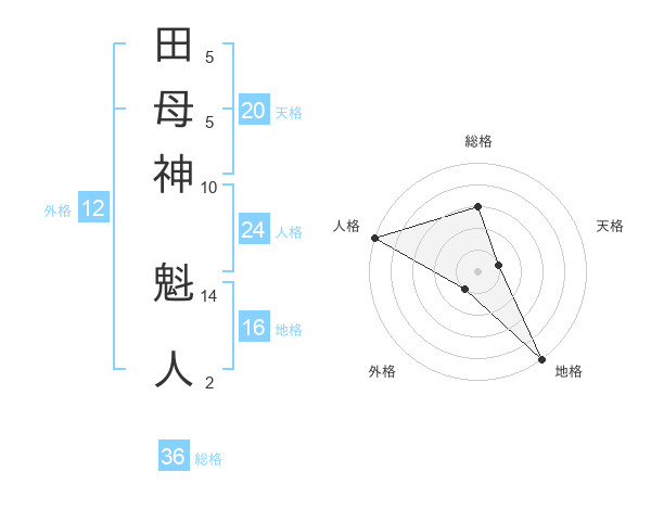 田母神 魁人さんの外格は12画の1点!