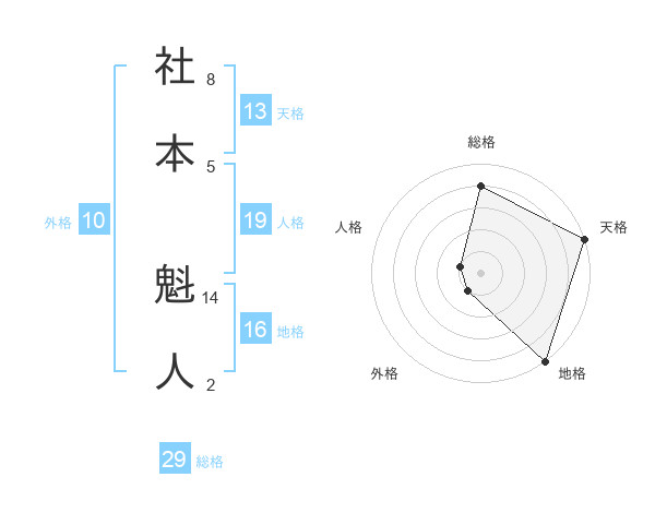 社本 魁人さんを姓名の画数から五運を鑑定