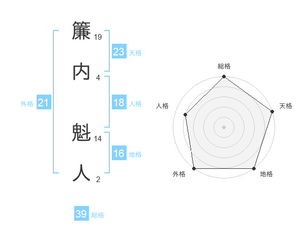 簾内 魁人さんの総格は39画の5点!