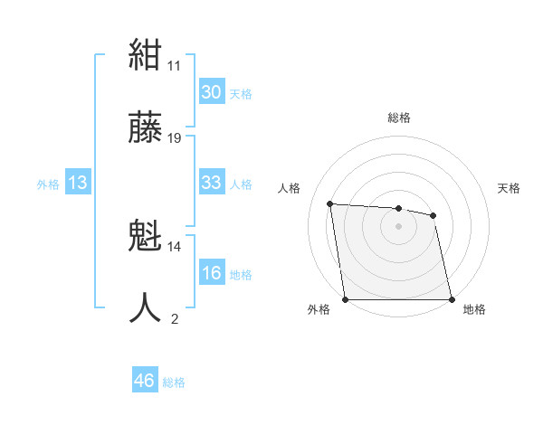 紺藤 魁人さんの天格は30画の2点!