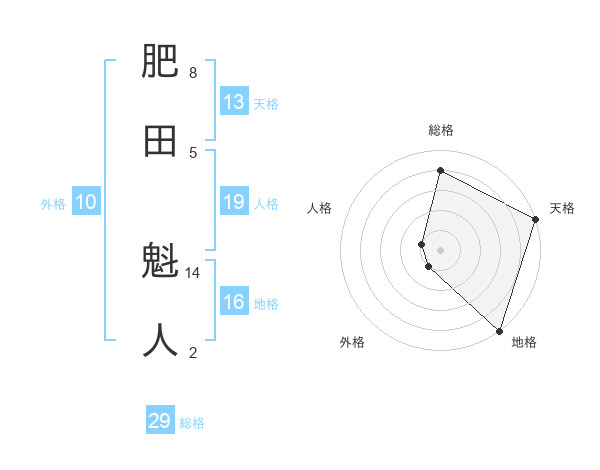 肥田 魁人さんを姓名の画数から五運を鑑定