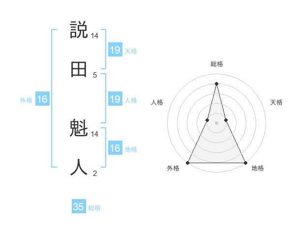 説田 魁人さんを姓名の画数から五運を鑑定