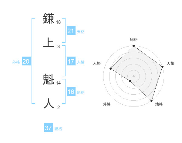 鎌上 魁人さんの総格は37画の5点