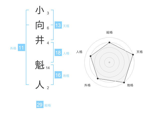 小向井 魁人さんの総格は29画の4点!