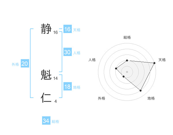 静 魁仁さんの総格は34画の2点!