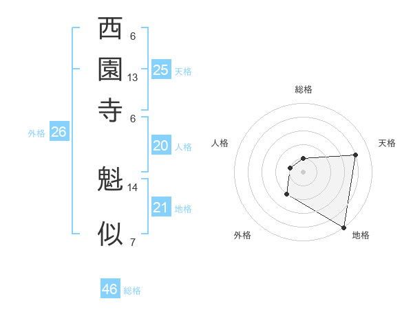 西園寺 魁似さんを姓名の画数から五運を鑑定