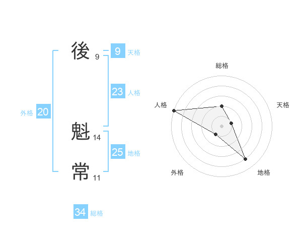 後 魁常さんの外格は20画の1点!