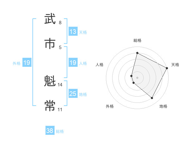 武市 魁常さんの総格は38画の4点!