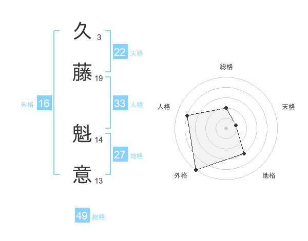 久藤 魁意さんの総格は49画の2点!