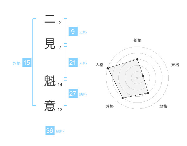 二見 魁意さんの総格は36画の3点!