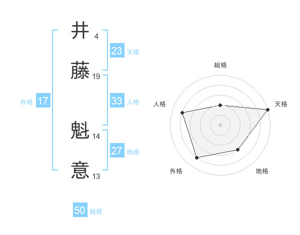 井藤 魁意さんを姓名の画数から五運を鑑定
