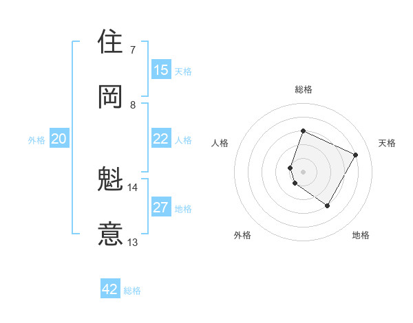 住岡 魁意さんを姓名の画数から五運を鑑定