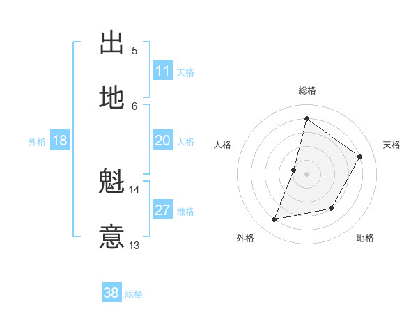 出地 魁意さんの総格は38画の4点!