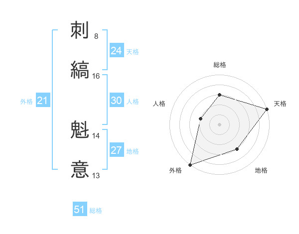 刺縞 魁意さんの総格は51画の3点!