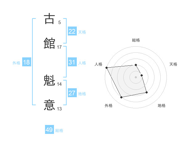 古館 魁意さんの総格は49画の2点!