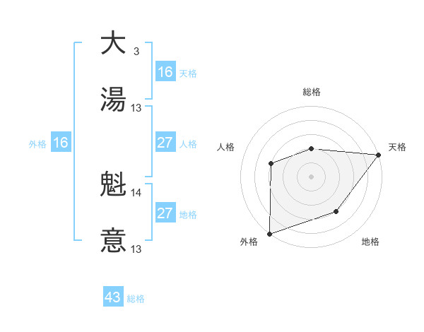 大湯 魁意さんを姓名の画数から五運を鑑定