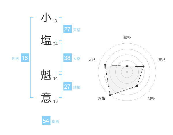 小塩 魁意さんを姓名の画数から五運を鑑定