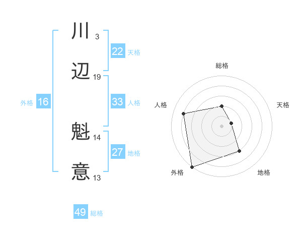 川辺 魁意さんの総格は49画の2点!