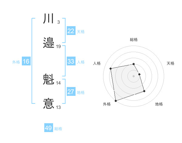 川邉 魁意さんを姓名の画数から五運を鑑定