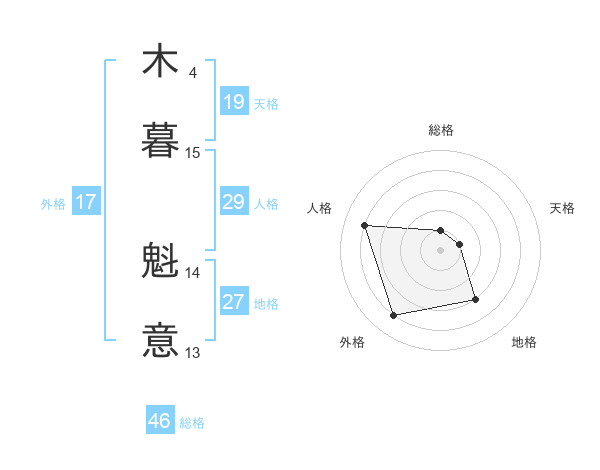 木暮 魁意さんを姓名の画数から五運を鑑定