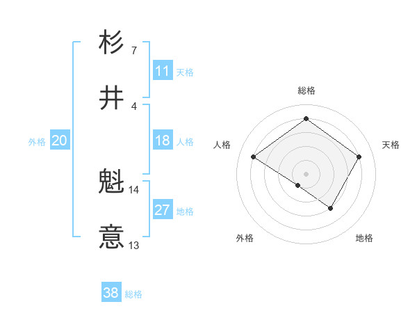 杉井 魁意さんの総格は38画の4点!