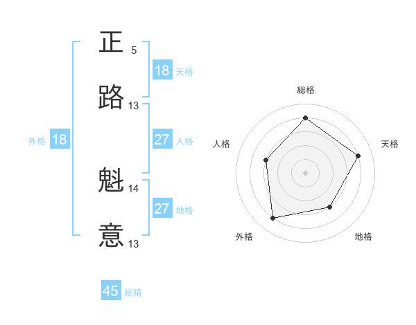 正路 魁意さんの総格は45画の4点!