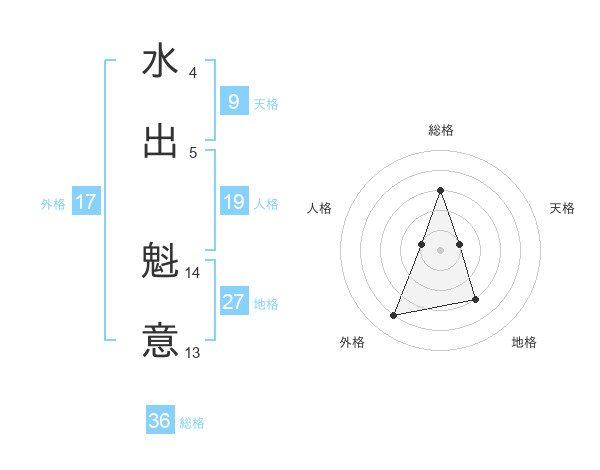 水出 魁意さんを姓名の画数から五運を鑑定