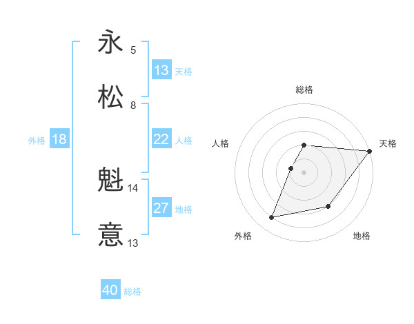 永松 魁意さんの天格は13画の5点!