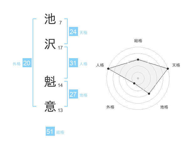 池沢 魁意さんを姓名の画数から五運を鑑定