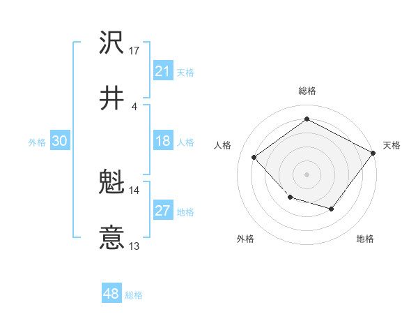 沢井 魁意さんの天格は21画の5点!