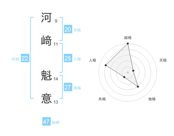 河﨑 魁意さんを姓名の画数から五運を鑑定