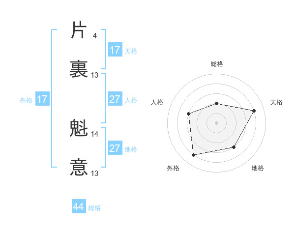 片裏 魁意さんを姓名の画数から五運を鑑定