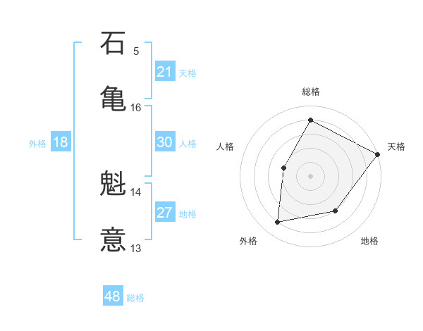 石亀 魁意さんの総格は48画の4点!