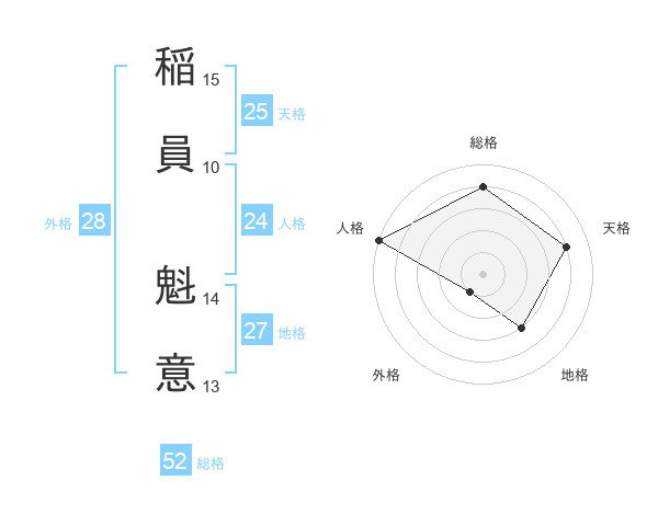 稲員 魁意さんを姓名の画数から五運を鑑定