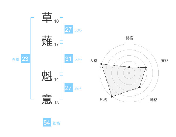 草薙 魁意さんを姓名の画数から五運を鑑定