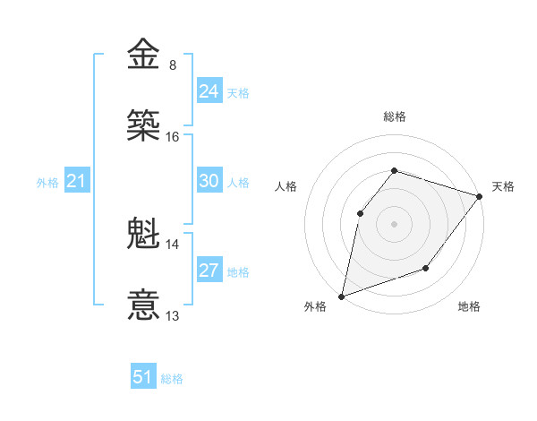 金築 魁意さんの総格は51画の3点!