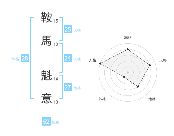 鞍馬 魁意さんを姓名の画数から五運を鑑定