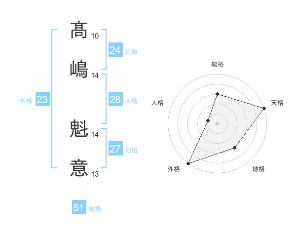 髙嶋 魁意さんの総格は51画の3点!