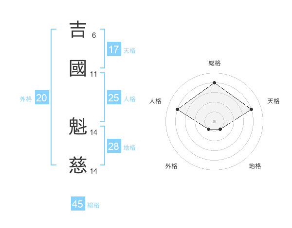 吉國 魁慈さんの総格は45画の4点!