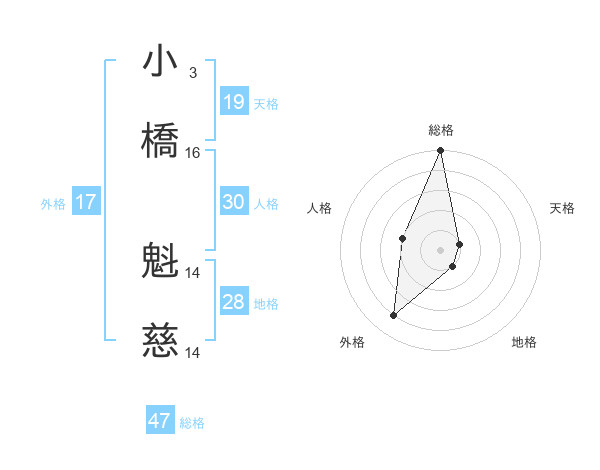 小橋 魁慈さんを姓名の画数から五運を鑑定