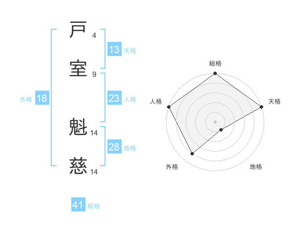 戸室 魁慈さんの総格は41画の5点!