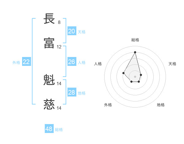 長富 魁慈さんの総格は48画の4点!