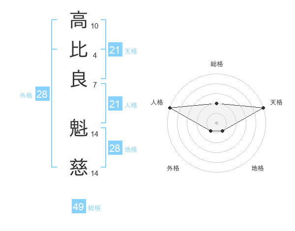 高比良 魁慈さんの天格は21画の5点!
