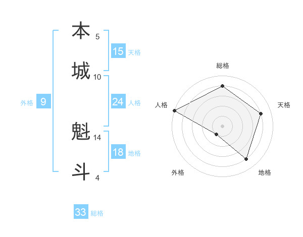 本城 魁斗さんを姓名の画数から五運を鑑定
