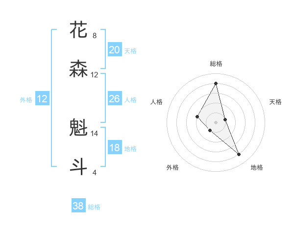 花森 魁斗さんの総格は38画の4点!