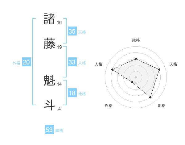 諸藤 魁斗さんの総格は53画の3点!