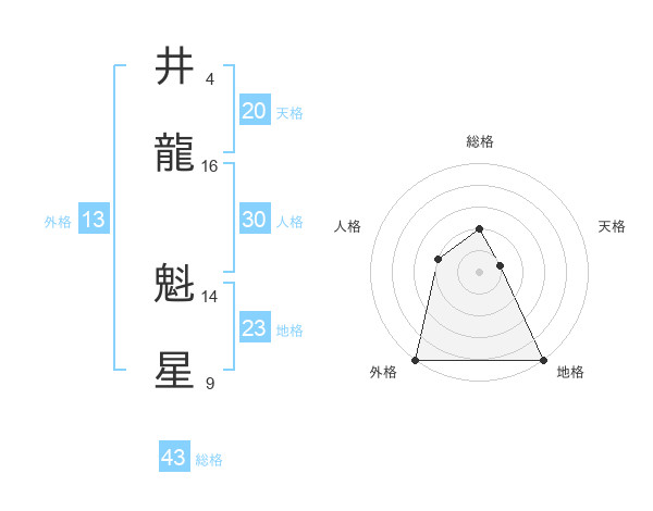 井龍 魁星さんを姓名の画数から五運を鑑定